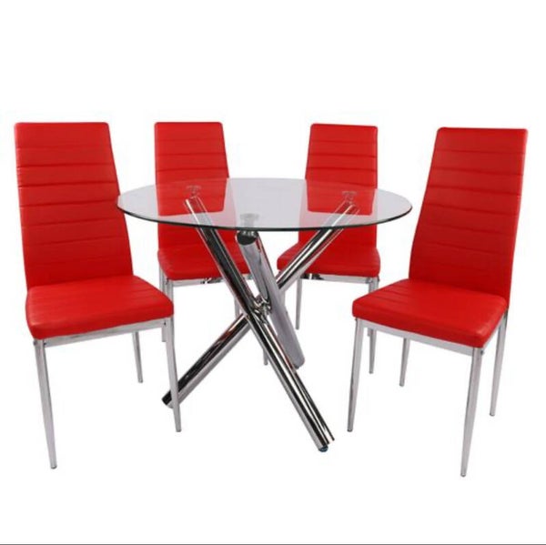 Dining Table, Clear Top, Chrome Leg, Clear Tempered Glass 8 mm.